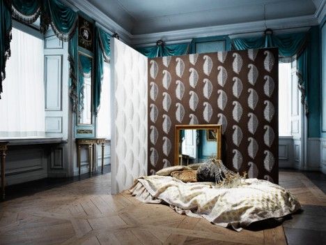 For their first range of wallpapers, Swarovski Elements co-opted British designer Karen Beauchamp, specialized in manual techniques of creating wallpaper.