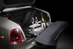 In conceiving these two motor cars, the Bespoke design team dedicated themselves to understanding how both cars augment the lifestyles of the marque’s discerning customers. Every possible detail was considered. For example, the split-tailgate has been enhanced with the addition of a beautifully engineered companion to a perfect touring day’s picnic. A glass shelf, housed within the rear section of the tailgate can be effortlessly deployed serving as the perfect place from which to serve Champagne. No concession has been made to compromise. A champagne fridge, large enough to hold two standard bottles and eight Rolls-Royce glasses, occupies a large portion of the boot, whilst the comfort of those who wish to sit on the rear- tailgate is ensured with the use of the finest padded leathers.