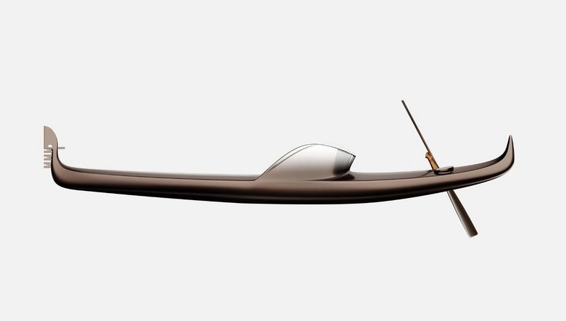 “I have a lot of admiration and respect for the gondola, one of the most complex boat in the world as its design is completely asymmetric but nevertheless its weight is perfectly balanced and can goes straight even in the hardest conditions. It’s magic, it’s pure magic. That’s why it’s a great honour for me to dream about a gondola and especially, on a winter gondola with a small room in the centre. That’s why what I show you today don’t try to be realistic, it’s just a dream. The technical specs of the gondola I have thought about are interesting: durable hi-tech materials and technology (seaweed bio resins, compressed bamboo, gyroscopic stabilizer powered by solar energy, electric assistance with a mini electric turbine powered by solar energy and hydro-generator, etc.)” explains the creator Philippe Starck.