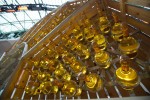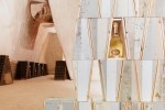 Inspired by Ruinart’s history, Piet Hein Eek created individual wooden cases for each bottle, made entirely in his workshop. The wood chosen for the bespoke creations is a disregarded wood, considered imperfect by the industry. The result is a new breed of geometric and ecological marquetry. Individually signed and numbered, the Ruinart Blanc de Blancs were integrated in an imense arch sculpture made from the same recovered wood.
