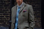 fit, colours pick up on the shades of officers’ uniforms. A traditional blazer in tweed with three buttons and pointed lapels is