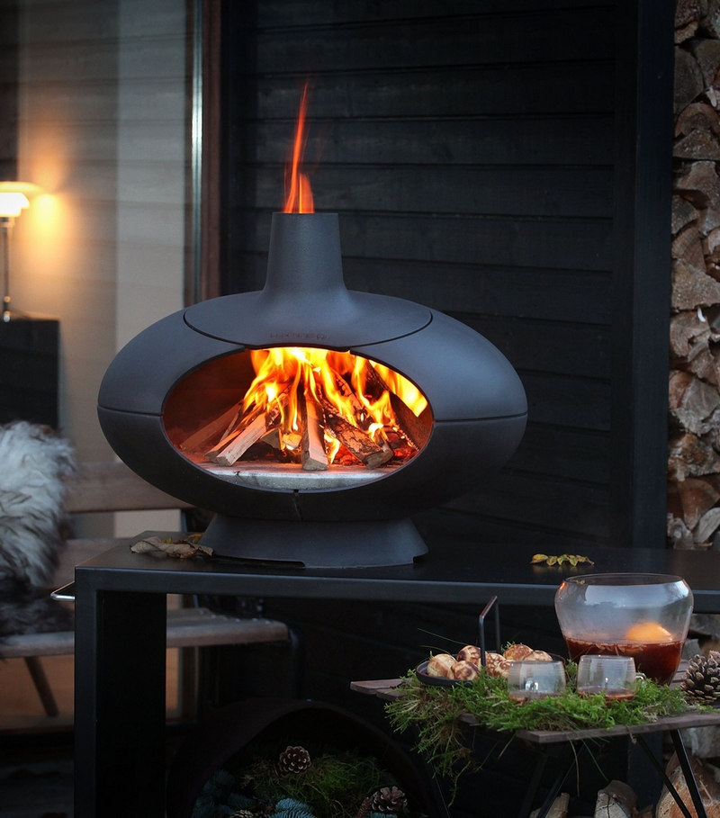 Complete with the cast iron Outdoor Oven – perfect for pizzas – and a grill, Morso Forno Deluxe Outdoor set includes a large outdoor table on wheels to facilitate moving it around the patio. Underneath there is plenty storage for pre-cut wood and, most importantly, utensils and condiments.