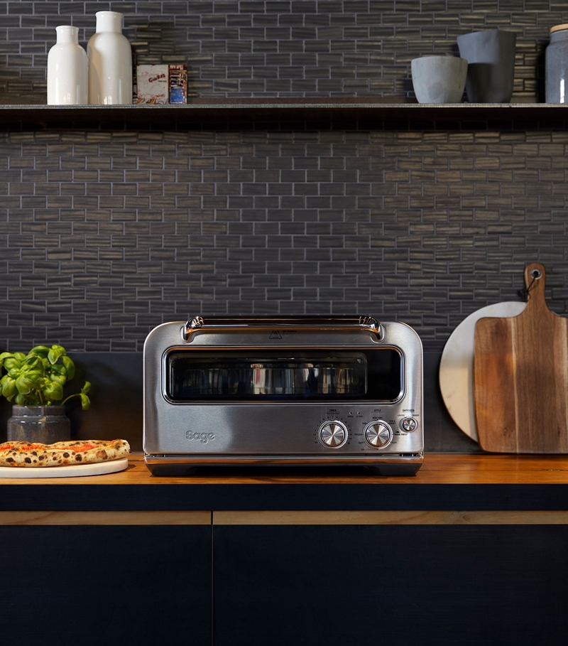 Sage’s The Smart Oven Pizzaiolo is the first domestic benchtop oven allowing you to cook authentic wood fired-style pizzas at home. Seven preset modes are included, replicating the optimum environment for producing everything from thin and crispy homemade varieties to ones that could be straight off the streets of New York. The dynamic deck expertly maintains an even cooking temperature, allowing you to achieve classic, lightly charred results in just two minutes.