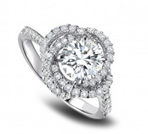 Mercury Ring Halo Twist Platinum and Diamond Engagement Ring