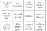 The cards contain reasons why either individual may experience guilt and stress in their day to day lives, and if the statement is true will be marked off. The participants are encouraged to be open and explore their emotions. Phrases like “Didn’t breastfeed them for a year”, “had an epidural” and “Used TV as a babysitter” allow them to vent the actions that are bothering them.