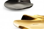 The Cell collection of three stainless steel candle-holders draws inspiration from the replication and growth of cellular organisms – the individual points, the ‘nuclei’, are connected by a dramatic reflective landscape, which appears to hover in mid-air. Every angle of this form has been considered and honed, so that in profile the edge thickness slightly varies – although this presented a considerable challenge in fabrication, it has produced a subtle, uncompromising and flawless quality that is unique to Zaha Hadid Design’s work.