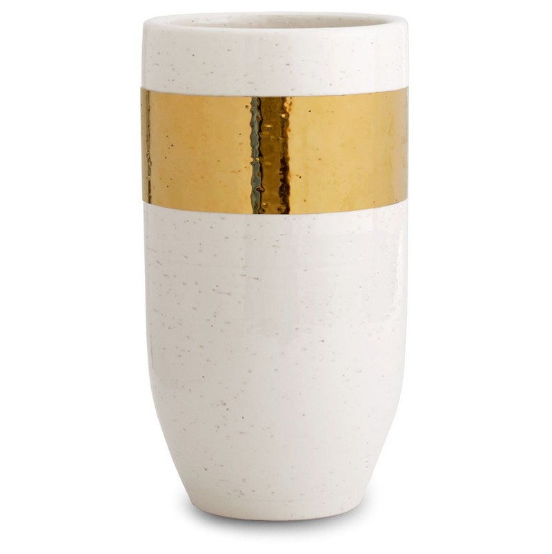Aerin Large Gold Banded Ceramic Vase with 18 karat gold edging