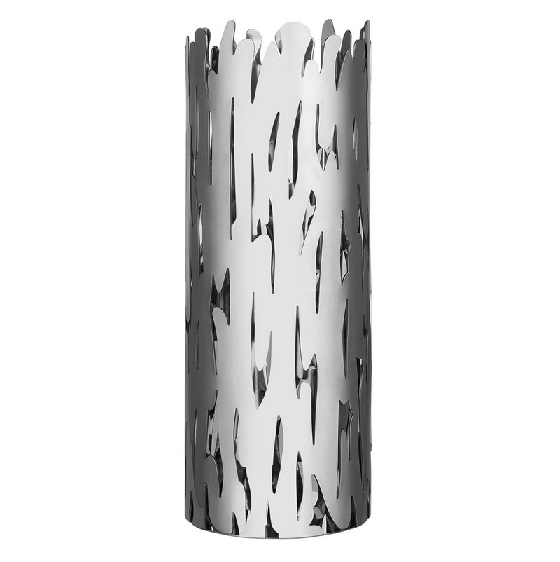 Designed by Michael Boucquillon and Donia Maaoui, the Barkvase flower vase from Alessi is inspired by the trees that surround their house in Lucca, Italy. Made in Crusinallo, Omegna, from a laser-cut steel sheet, the perforated pattern recalls the knots in wood grain, while the cylindrical shape suggests the structure of a tree trunk.