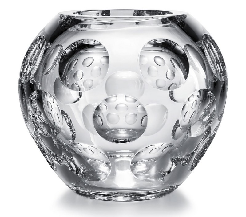 This pure crystal round vase from Baccarat is a tribute to the original design by Georges Chevalier. Cut with large round bevels, the hollowed-out circular motif creates a kinetic optical effect typical of the period.