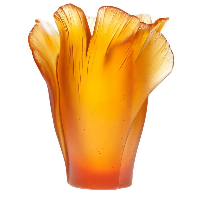 Handcrafted in France from crystal glass, a vibrant Ginko leaf offers a visually attractive display on the Daum Ginko Vase.