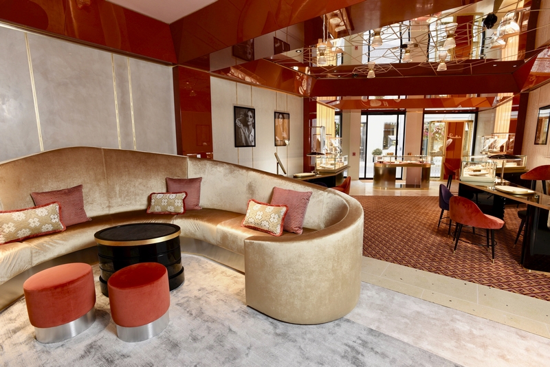 The new L.A. boutique reflects Pomellato’s distinctive store concept, originally created by Dimore Studio. With its styled signature lacquered Montenapoleone red on the façade and the iconic band ring featured as a door handle evoking a jewel at first touch, the store recalls mid-century classic architecture.