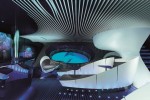 Research Institute for the Exploitation of the Sea (IFREMER), that are integrated beneath the keel. The natural symphony of the deep sea is thus captured across a five-kilometre radius and transmitted live into the lounge in the form of acoustic waves spreading through the three dimensions of Jacques Rougerie’s architecture.