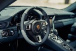 Luxurious comfort awaits the driver and passenger thanks to a high-quality, graphite-blue leather interior with adaptive Sports seats Plus and 18-way adjustment. The headrests are embossed with the Porsche logo and a 911 Targa silhouette adorns the cover of the storage compartment in the centre console. The lettering “Porsche Exclusive Manufaktur” on the trim of the dashboard highlights the vehicles exclusive origin. The decorative stitching of the seat leather, air nozzle slats and floor mat trim are all presented in Provence blue. The comprehensive refinement also includes leather trim on the seat backrests, steering column casing, parts of the dashboard and air nozzles.
