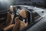 Exclusively available in conjunction with GT Silver Metallic paint, as a tribute to the golden days of motorsport, the front bumper and front fender “arrows” are painted in White. The “gumball” styled graphics in White on the front luggage compartment lid and the doors were inspired by historic Porsche 356 models, whose owners decorated them individually as they participated in races at the time. These areas can be fitted with individual start numbers via Porsche Tequipment, or the customer can order the vehicle without these stickers if desired. The historical “Porsche” decal along the sides of the car completes the classic-inspired exterior look of the vehicle, as well as the historic Porsche crest on the front luggage compartment lid.