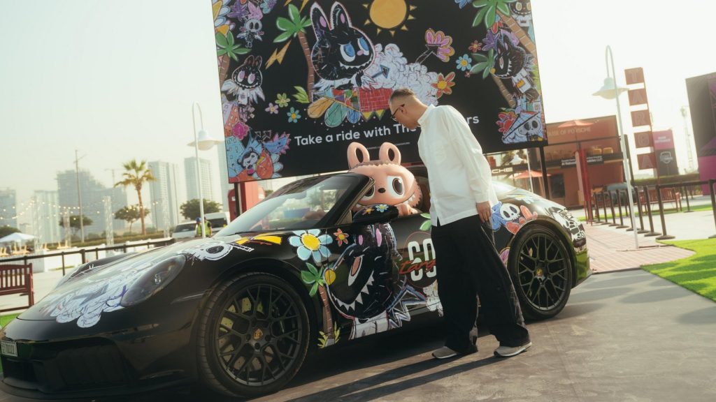 Art Car as Cultural Catalyst: The life-size Art Car, a current-generation 911 Targa (Type 992), serves as the physical epicenter of this cultural collision. The Labubu figure behind the wheel, dressed in a Porsche T-shirt, is a cheeky yet effective anthropomorphism of the brand’s adventurous spirit. This Art Car, specially designed with an aesthetic inspired by the Dubai venue, transforms the 911 from a performance machine into a bespoke, movable sculpture—a perfect piece of social currency for the “Instagrammable” age.