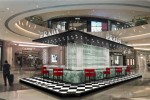The idea of ‘Prada Spirit’ is a typical Italian traditional café, where it displays an exclusive collection of leather bags and accessories. Luxuriate on the red velvet sofas and small tables at ‘Prada Spirit’ while browsing the “Product Menu”. Shoppers can also admire and enjoy the unique bar setup and the wall-chandelier, designed with a sequence of multi-faceted Perspex blades that captures the festive spirit of the Chinese New Year.