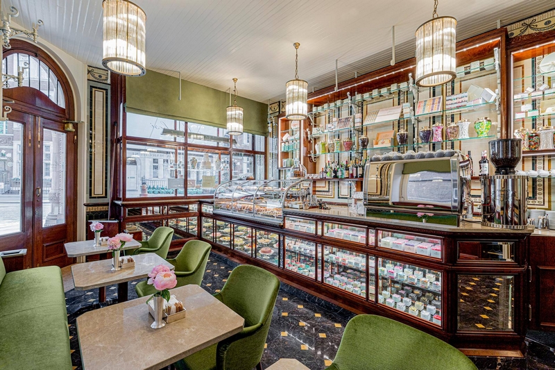 For almost two centuries, Marchesi 1824 has stood out for its fine pastries, prepared following traditional recipes, its soft croissants and its selection of chocolates. The London shop combines this traditional range of Italian confectionery with a wide selection of candies, bonbons, chocolates, pralines, and sweets, surrounded by elegant cherry furnishings and original, carefully restored, decorative tiles.