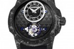 The Tourbillon Oculus 1297 Orage watch is equipped with the patented Tourbillon XP1movement which had needed several years of research and development. The timepieces is known to have a perfect tourbillon’s cage balance and to be one of the most precise tourbillon movement in the world with a tolerance between 0 to 2 seconds per 24 hours. The movement is equipped with a silicium escape wheel and lever, and a 22 karats gold hand-engraved rotor.