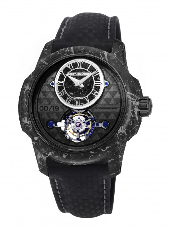 Admiral Chronographe Flyback Prato’s unique design inspired by modern sports cars is head-turning. There are some innovations packed unde the case. According to masterhorologer, The dials of the two Admiral Chronographe Flyback Prato models are inspired by the forged carbon technique used in the automotive industry Ateliers deMonaco developed a new method that includes 18-carat gold in this technique. This is the first time ever that such a dial is created. To achieve this result, carbon fiber, gold and resin must be mixed and placed in a mold. Then, this mixture is heated and pressed to fix everything and form a block. Thanks to this technique, each dial is unique.