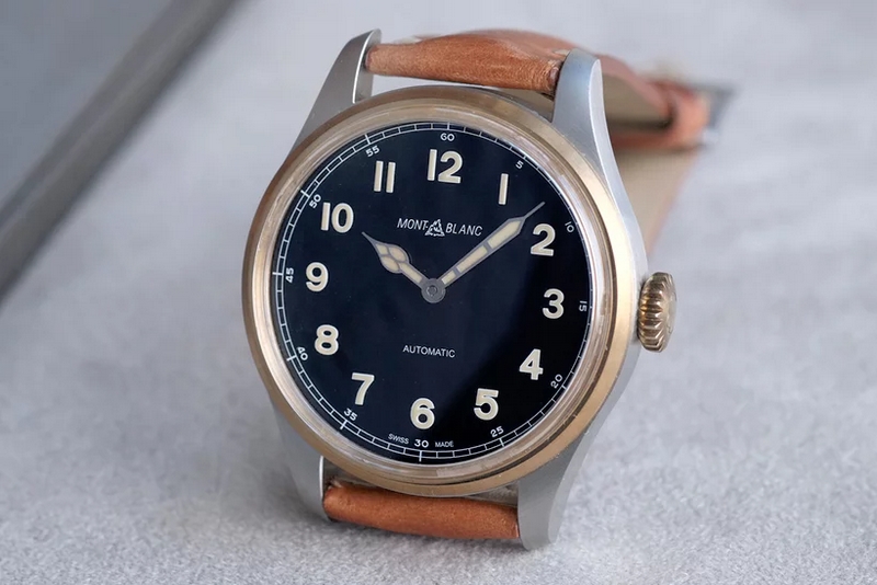 1858 Automatic and 1858 Automatic Dual Time are a pair of two-tone watches taking inspiration from military watches found in Montblanc Minerva archive.