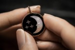 On the front, a mother-of-pearl moon and three small white gold stars have been embedded with infinite care in an onyx disc in order to reveal all their brilliance.
