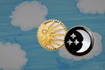 Designed by the Creative Director of Dior Joaillerie, the two heavenly bodies of the Rose Céleste medallion reveal all their brilliance before the founding couturier’s eyes. In the manner of an eclipse, a majestic yellow gold sun chiseled into mother-of-pearl, embellished with nine different-sized rays, and placed on one side, gives way to an onyx disc, set with a mother-of-pearl moon and three stars in white gold, placed on the other.