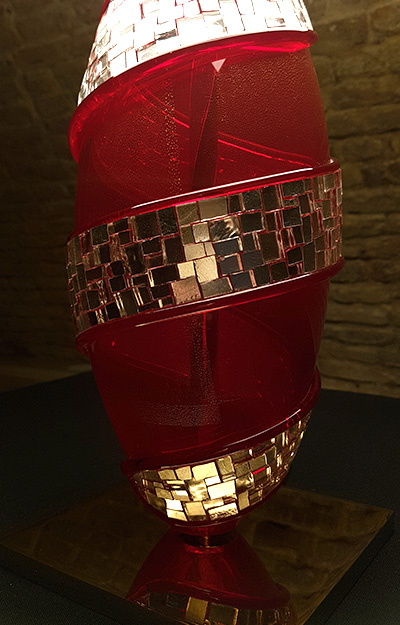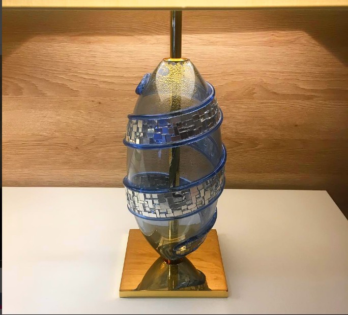 For the first time in the history of art the two most precious forms of the same fluid material, glass, meet together creating unique artworks that range from lighting elements to home furnishings. Each piece arises from the artistic sensitivity of the founder, Michelangelo Serena, who draws by hand the designs and follows the blown glass creations in the prestigious Seguso Gianni glass factory in Murano, Italy. The objects are completed at the laboratory located in Spilimbergo , in which Michelangelo and his father Alessandro apply the mosaic tiles with the collaboration of talented mosaicists.