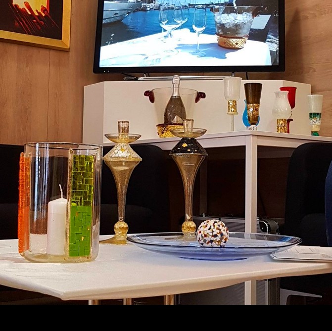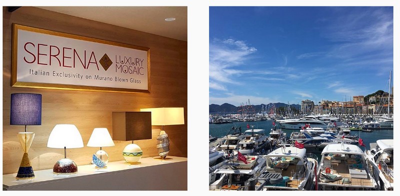 Serena Luxury Mosaic was part of the mise en scène of the Luxury Gallery during the recent Cannes Yachting Festival. The representative of Luxury Art Made in Italy has chosen the biggest yachting event in Europe to unveil its new collection with Murano blown glass and mosaic art with gold leaf.