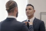 The formal outfit pairs a cashmere coat, a jacket, a shirt and pants, and a pair of black leather Dior Timeless derbies. The pieces are enhanced by other subtle details, reflecting Dior’s exceptional savoir-faire. The insole of the shoes is embossed, with a silver film, with the players’ jersey numbers.