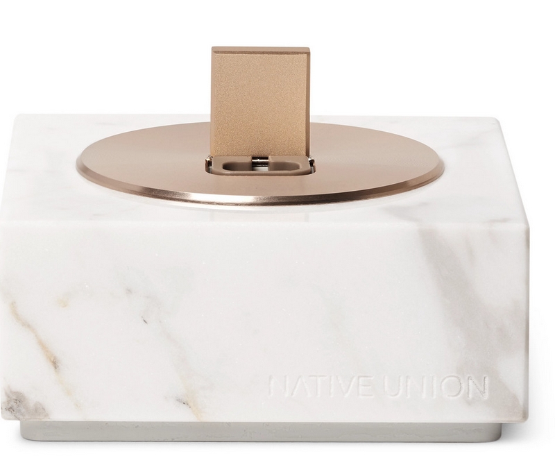 Sleek and sturdy, Native Union’s impeccably designed dock allows you to view and navigate your iPhone or iPad while it charges. It’s cut from solid marble and fitted with aircraft-grade aluminium to provide ample support for your device. The accompanying adapters are made to fit most cases, while the matching cable is reinforced with braided nylon for durability.