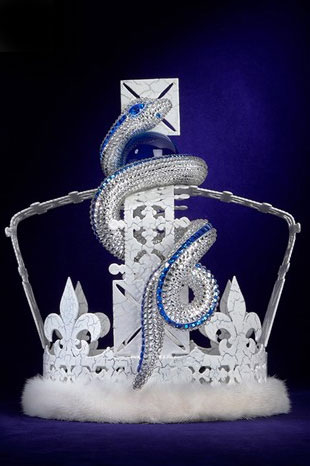 Each of the designers put his distinctive mark on the St. Edward’s Crown. Bulgari, Paul Smith, Lanvin Mulberry and Valentino are just some of the luxury brands to have reinterpreted the crown, addorned now with 974 diamonds (De Beers), a chapeau (Roberto Cavalli), snakes (Bulgari & Boucheron), or caviar polish / mosaic (Mulberry).