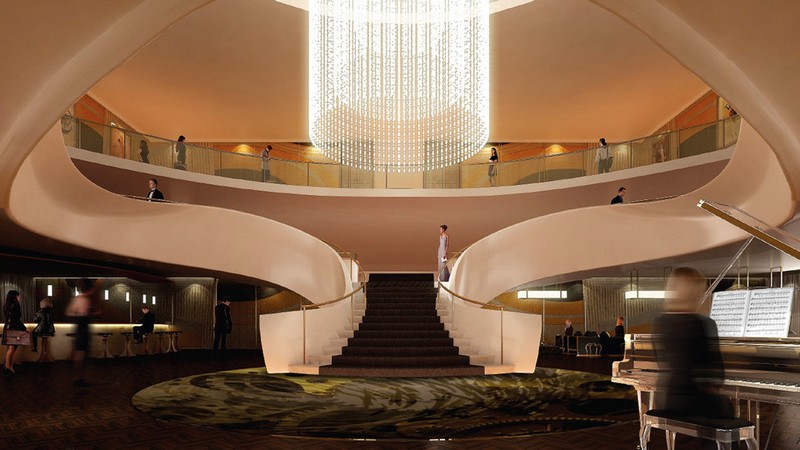 The 112 berth super yacht, which will be 40 metres longer than the world’s biggest private vessel Azzam,will feature an underwater bar, cigar storage room, wine cellar, spa with world-leading therapists andpersonal stylists, as well as hosting exclusive parties with famous performers. Membership at