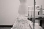 More than 1,000 hand-cut handkerchiefs and 1,640 feet of fabric were cut into ruffles and attached by hand, creating a voluminous, romantic skirt. Each handkerchief becomes a nostalgic keepsake and a modern heirloom, while the intricate constructed ruffled sleeves become a statement in craftsmanship and dignified design.