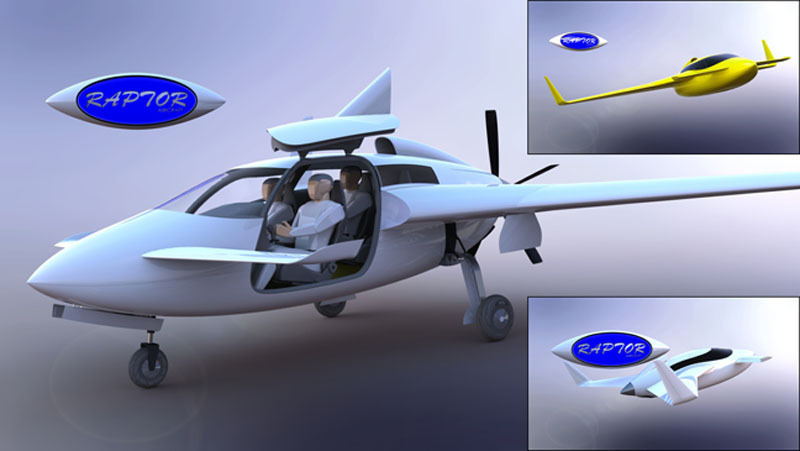 Raptor Aircraft introduced an all new canard aircraft design to be provided as a composite, experimental kit built aircraft able to comfortably seat 4 or 5 people and cruise at 300 knots. This pressurized aircraft has an initial kit price of $80,000. A completed Raptor will cost in the vicinity of $250K – $300K.
