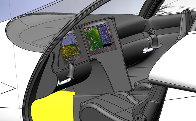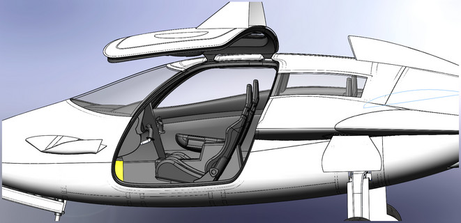 Fuel capacity is initially set to 133 gallons with an option for 160 gallons allowing for a range of up to 1500 nautical miles. Gull wing doors allow easy car-like access to the cabin. No more having to ask your spouse to climb up on a wing to enter the aircraft.