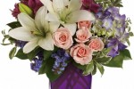 - accenting one-color arrangements with brights – such as the new Radiant Orchid or other color-saturated flowers such as plum-colored calla lilies and roses.