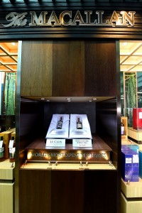 The Macallan 1926 Peter Blake and Valerio Adami bottles on display in Le Clos at Dubai Airport
