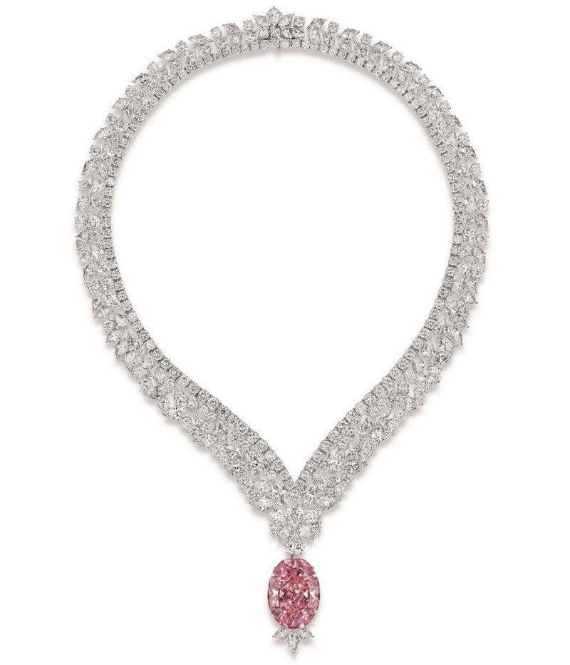 The Juliet Pink Diamond, which will be set in a necklace with marquise, pear and round-cut white diamonds totaling 98.70 carats for the exhibition, has been designated a type IIa diamond by the Gemological Institute of America (GIA) for its remarkable chemical purity and clarity.