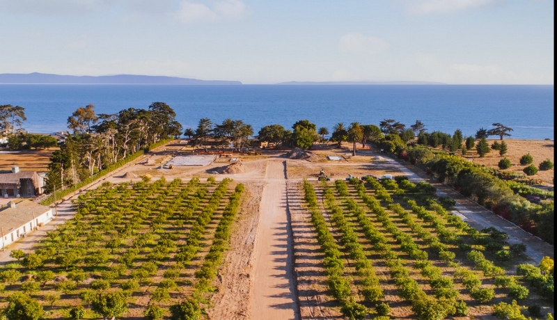 Included in this legacy waterfront offering is an approved design by the award-winning Tom Meaney Architects. Envisioned as an Andalusian Spanish farmhouse, when complete, the property will include a gate that opens to a road stretching several acres, bordered by orchards on each side. A massive fountain welcomes visitors to the main residence, which encompasses a contemporary-style floor plan with a harmonious flow between living and entertaining spaces indoors and out. In addition, the plans include a three-bedroom guesthouse, resort-style pool and cabana, tennis court, tennis pavilion, eight-car showcase garage with office and half bathroom, horse facility, an approximately 720-square-foot accessory structure “she shed,” organic vegetable garden, animal pens and organic orchards of avocado and lemon trees.