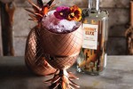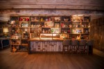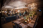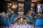 The house features a twenty three seat reclaimed wood dining table, Gustavian chandeliers, a copper disco ball, flamingo punchbowls and an abundance of the signature Elyx copper pineapple cocktail cups. The private residence is revealed only to those who know how to open the secret bookcase door.