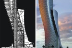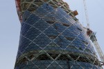 The Abu Dhabi’s Capital Gate tower features other innovative construction techniques including the world’s first known use of a ‘pre-cambered’ core, which contains more than 15,000 cubic metres of concrete reinforced with 10,000 tons of steel. The core, deliberately built slightly off centre, has straightened as the building has risen, compressing the concrete and giving it strength, and moving into (vertical) position as the weight of the floors has been added.