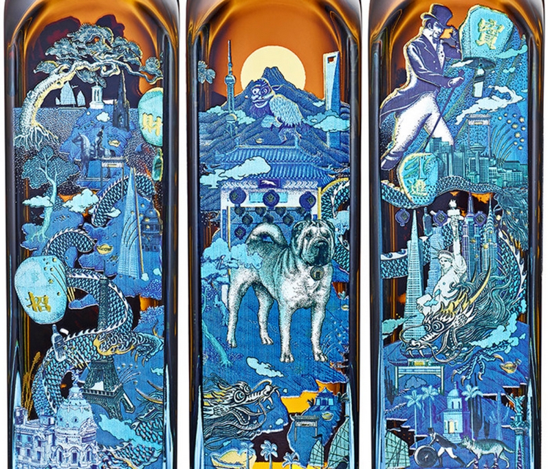 The award-winning artist Page Tsou was commissioned to create the Johnnie Walker Blue Label Year of the Dog bottle. The precious design consists of a total of four dogs all chosen for their special meaning in Asia.
