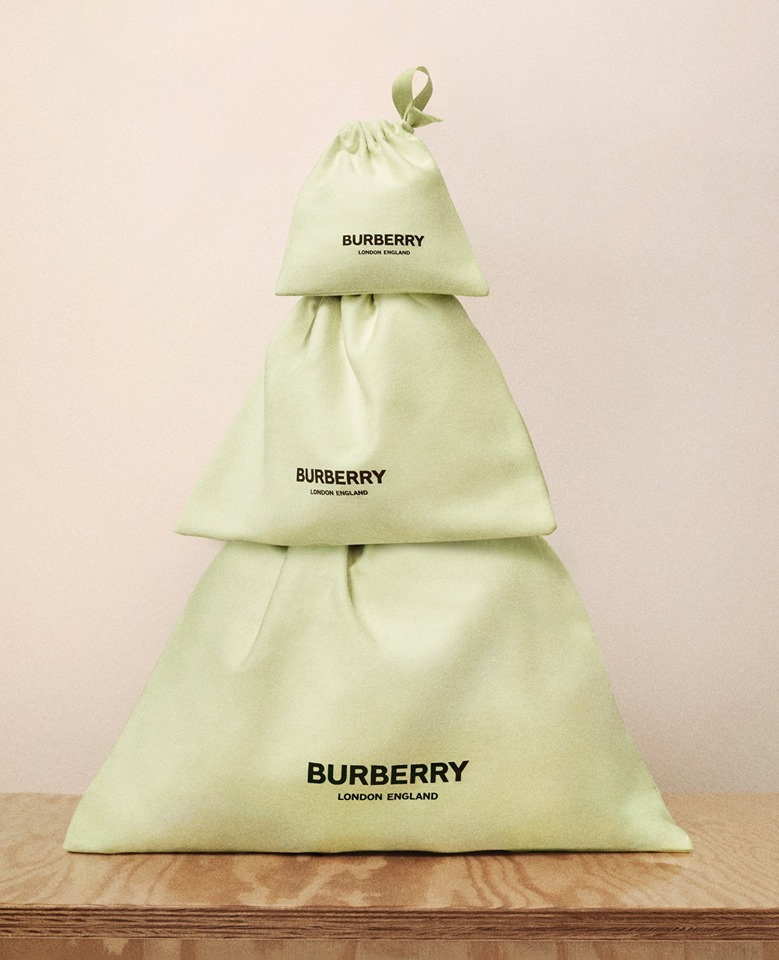 Burberry’s new packaging and dust bags are made from upcycled materials. The brand is reducing plastic, repurposing fabric and finding new technologies to create the materials of the future.