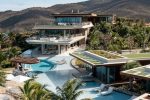 A curved wraparound master pool brings a luxurious curving element to the space, and joins the main house with three individual guest pods. These sit at the edge of the estate, providing their own sense of privacy. The poolside pods each come with their own kitchenette and living areas, as do each of the guest rooms in the main house.