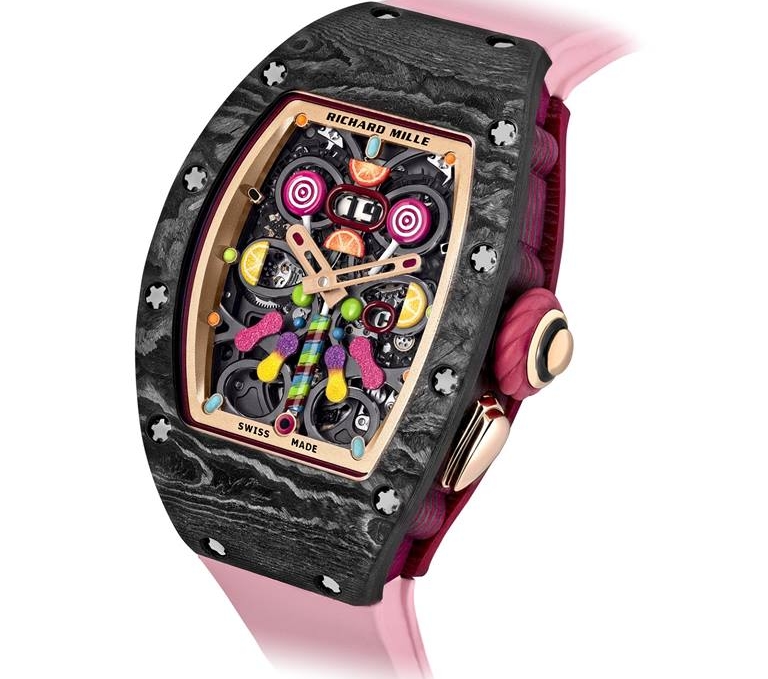 Richard Mille Bonbon Collection comprises 10 models, each produced in an edition of 30 pieces. The RM 07-03 Cupcake, RM 07-03 Marshmallow, RM 37-01 Sucette and RM 16-01 Réglisse are colourful and delectable.