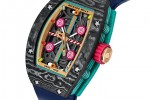 Forays into the spectrum of greens, crimson, yellow and even pink are possible thanks to a mastery of materials, many of them exclusive, that is a Richard Mille specialty. The brand’s understanding of how tinted ceramics behave, expertise in layering materials like Carbon TPT and Quartz TPT and constant improvements to the setting of coloured gemstones are all ingredients in these confectionary recipes.