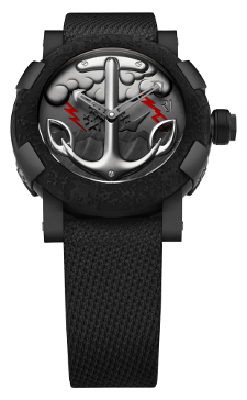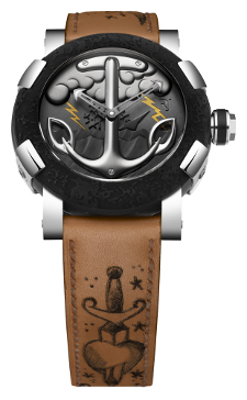 The choice of tattoo motifs took account of numerous maritime superstitions. The anchor for example, symbolises strength, stability and hope – but it is also a link to Mother Earth, which is viewed as protecting sailors. Some tattoos were also made as a tribute to a certain ship or a lost seaman. Such is the case of the “sailor’s grave”, the legend depicted on the dial of the new timepiece from RJ-Romain Jerome.