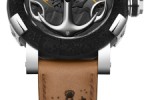 The models in the Tattoo-DNA collection, issued in 25-piece limited series per version, all feature a 50 mm case adorned with a black PVD-coated engraved bezel. The paws found on every RJ-Romain Jerome timepieces are in steel or black PVD-coated steel. The various stamped, engraved and decorated silver decorative elements lend an impressive sense of depth to the dial, which features a scene in which the elements are unleashed. Air, earth and sea appear to be threatening to engulf the boat. The anchor plays a predominant role on the dial in order to ward off bad luck and protect this ship caught up in a storm. The bolts of lightning flashing across the sky are red and yellow lacquered according to the versions and enhanced with superluminova green emission. Ready to face depths of 30 metres thanks to their 3 atm water resistance, the watches in the Tattoo-DNA collection are teamed with a black fabric strap or with a skin-coloured leather strap tattooed by Mo Coppoletta himself.