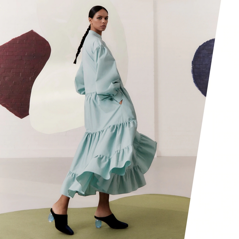 Heavily inspired by art and architecture, designer Roksanda Ilincic’s aim is to create clothing with confident and stylish women in mind. This capsule collection signifies ROKSANDA’s instantly recognisable aesthetic – featuring intense color, sculptural silhouettes and elegant final touches. The smooth textures and liquid-like fabric create fluidity and movement.