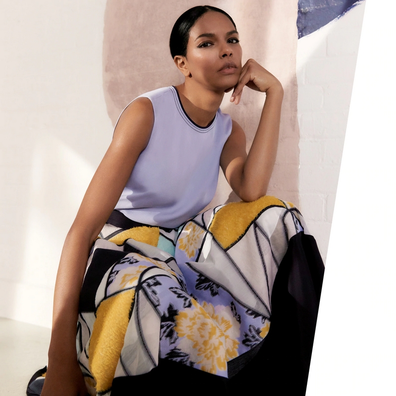 ROKSANDA’s signature shapes, prints and colors feature in a capsule collection by Fashion Designer Roskanda Ilincic celebrating femininity and empowerment; as modelled by Malaika Charity Founder Noëlla Coursaris Musunka.